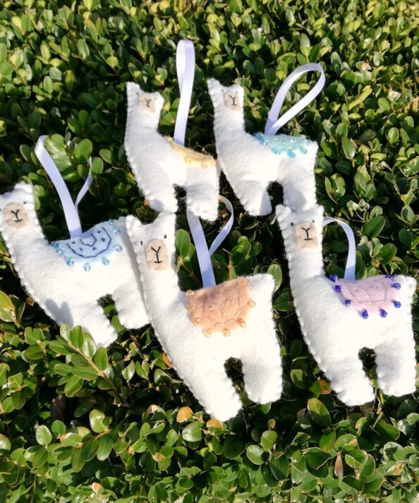 Each Alpaca wears a brightly coloured rug lined with beads and can be hung using the attached ribbon loop to spread some alpaca magic.