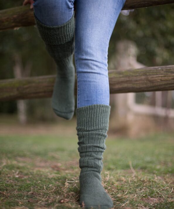 The perfect country socks for outdoor life, be that riding, gardening or just walking the dog. Plain luxury socks made of 75% alpaca and 25% nylon.These fabulous knee length socks are ribbed with an in-built cushioned sole and hand linked toe seams, for extra comfort.
